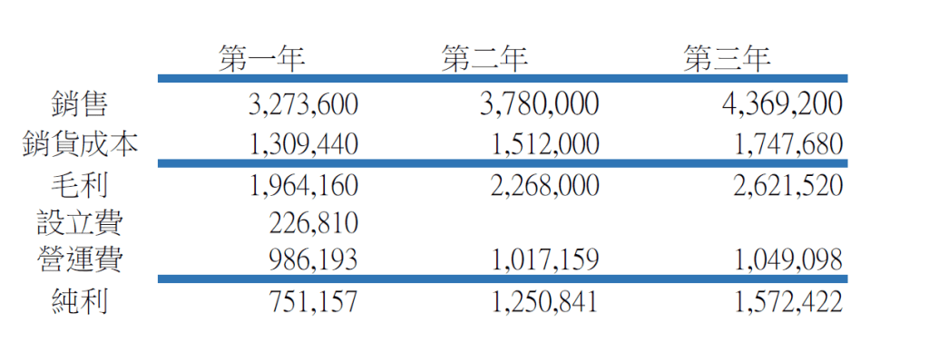 首年預計有八成的目標顧客消費,全年消費金額為3410 x 0.8 x 300 x 4 = 3,273,600